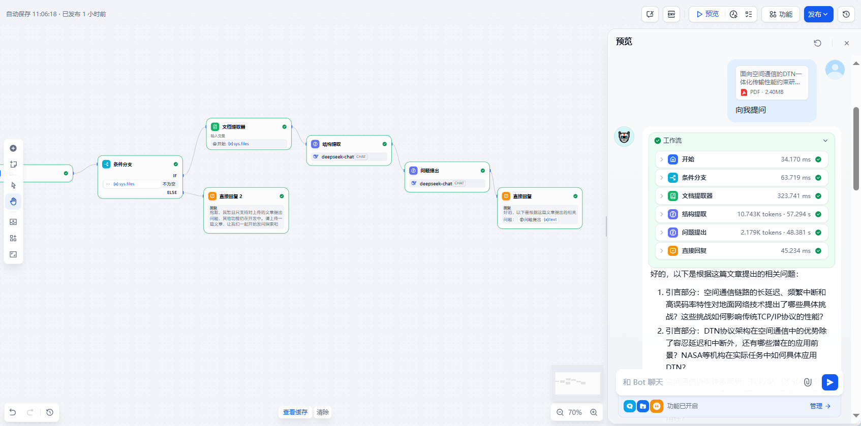 使用 文件上传 搭建一个文章理解助手,文章理解助手会根据上传的文档进行提问,协助用户带着问题去阅读论文等材料
