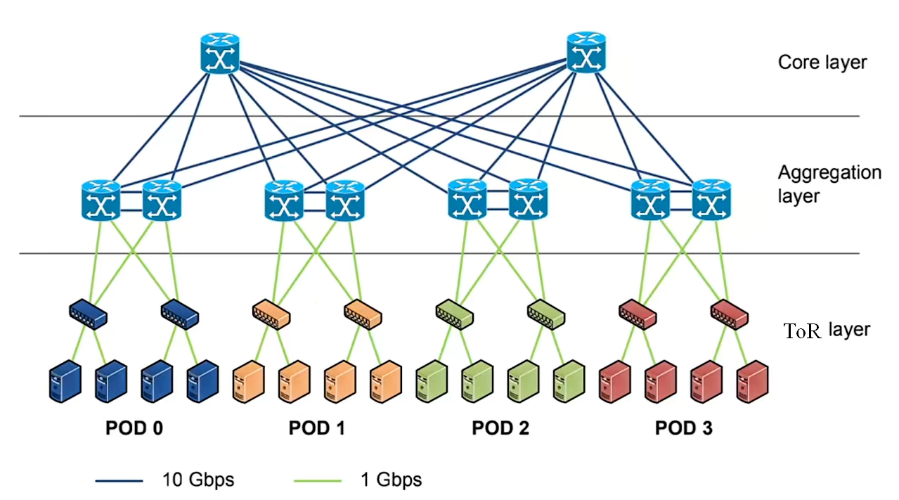 - 高性能,低延迟:尽可能减少网络跳数,从而减少延迟,提升ECMP路径选择的精准性
