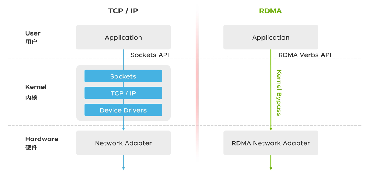 - 后端网络 :专门用于 GPU 之间的参数同步和梯度交换(如 All-Reduce 算子),要求极高的带宽和极低的延迟,通常采用 RDMA(Renote Direct Memeory Access,远程直接内存访问)技术